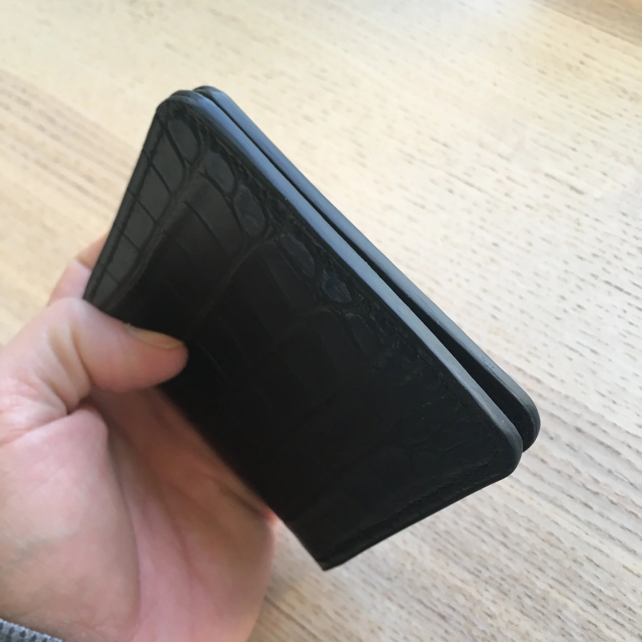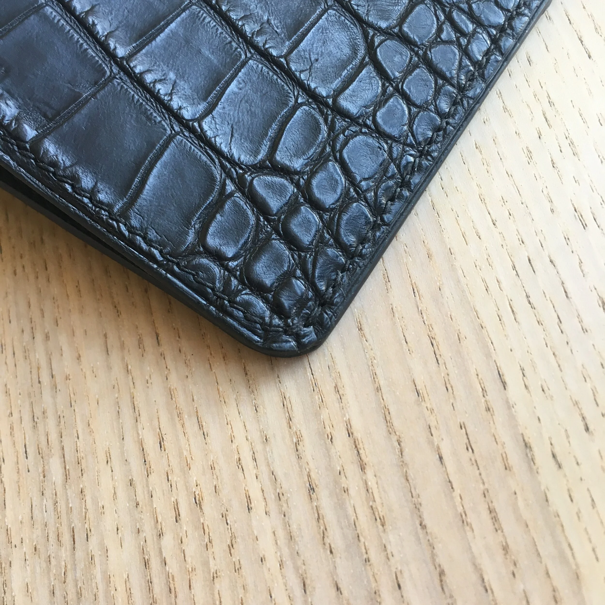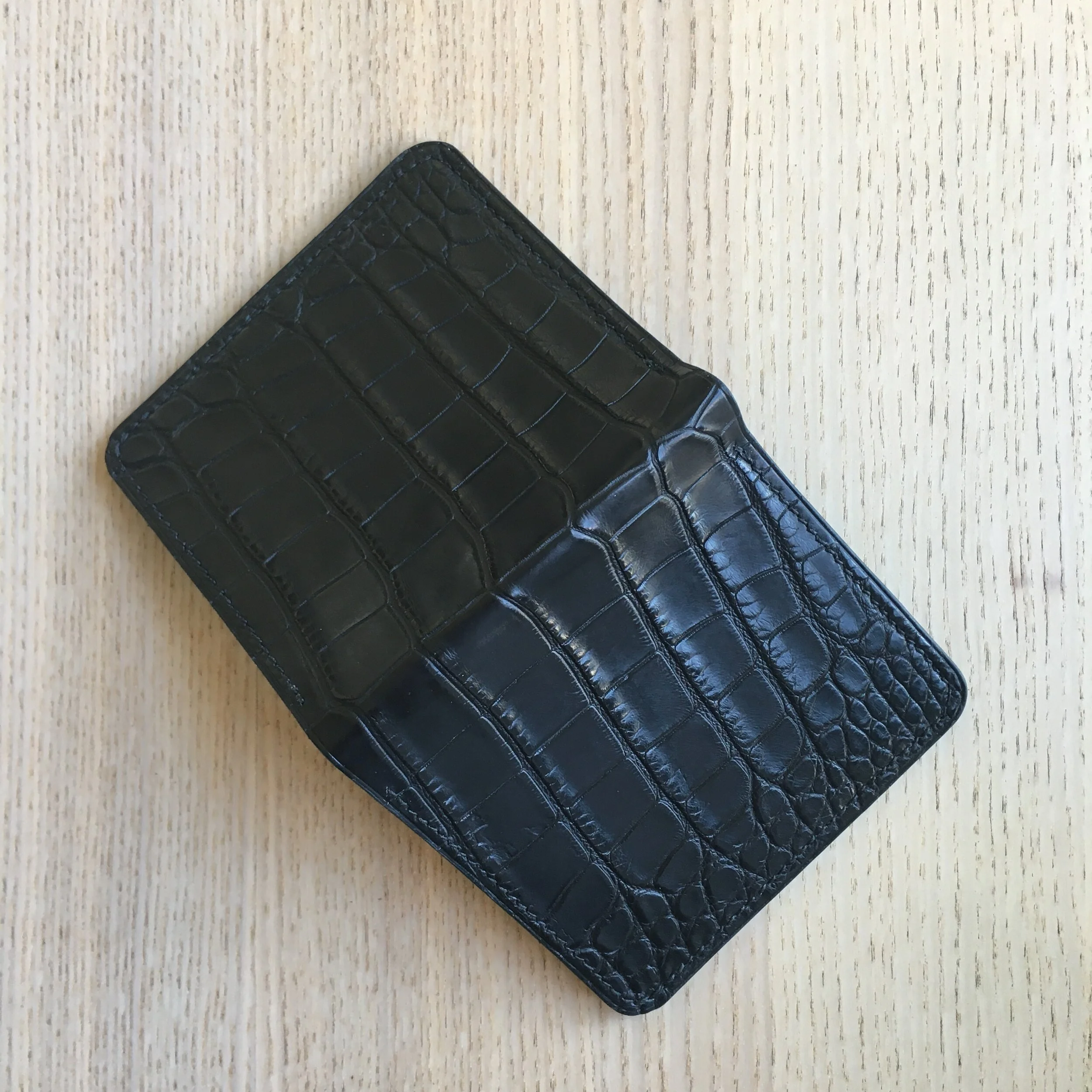 products Black Alligator wallet with goat skin interior $499.00 Wickett and Craig Chestnut Bifold $175.00 Wickett and Craig 5 Pocket Chestnut Card Wallet $80.00 Wickett and Craig 3 Pocket Chestnut Card Wallet $60.00 Buttero Navy Bifold $175.00 Buttero Navy 5 Pocket Card Wallet $80.00 Buttero Navy 3 Pocket Card Wallet $60.00